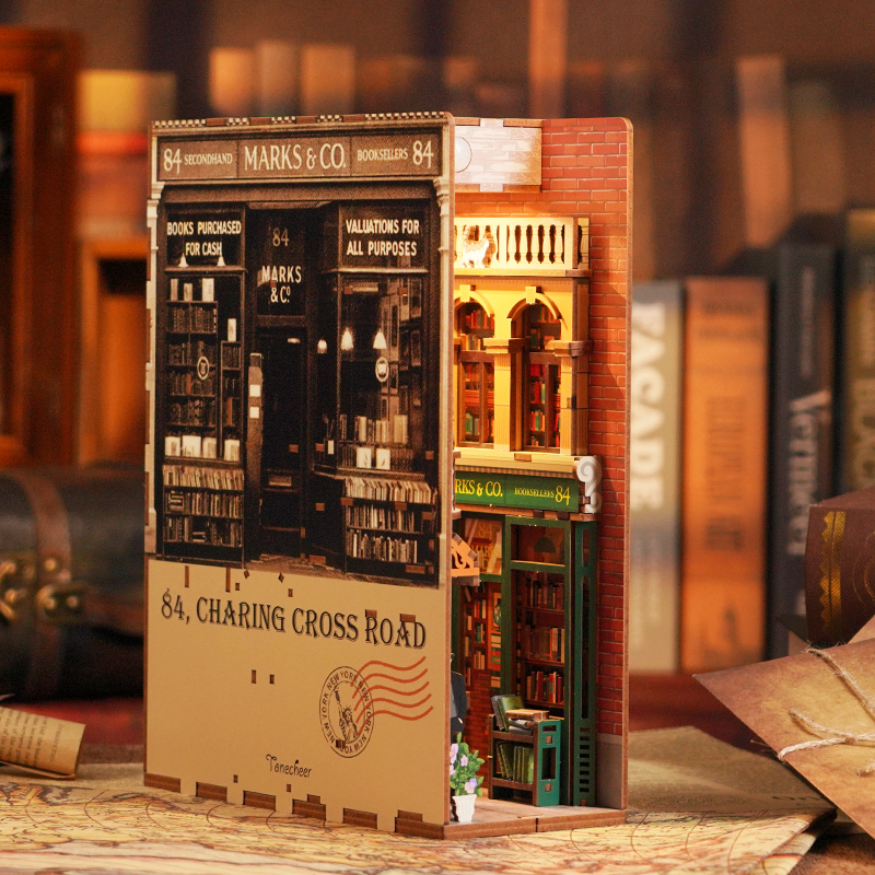 Trasforma la tua libreria in un magico passaggio verso l’iconica libreria di Londra con il Book Nook 3D in legno “84 Charing Cross Road“!