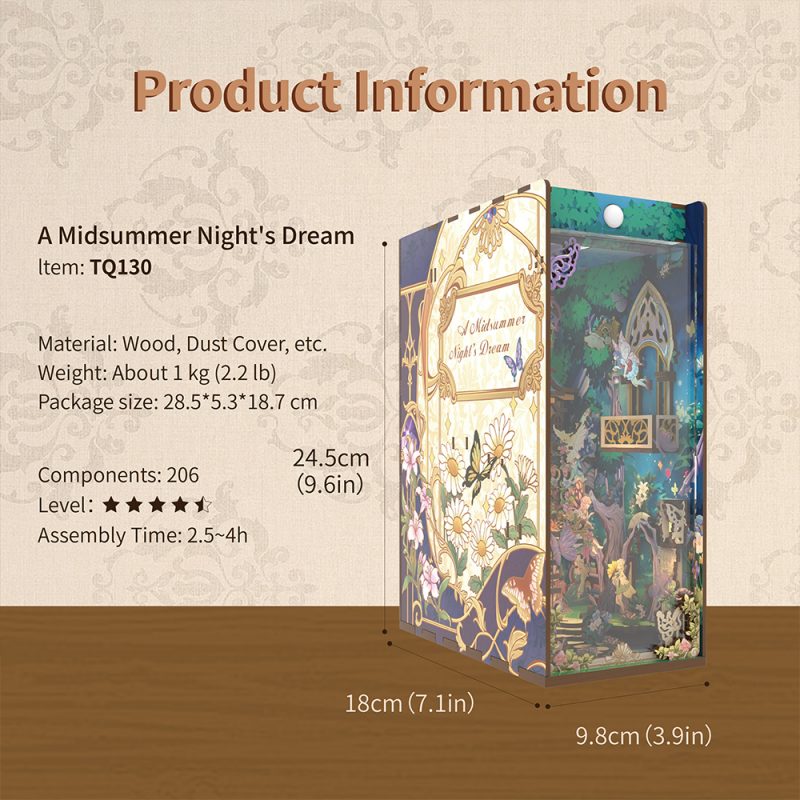 Trasforma la tua libreria in un palcoscenico incantato con il Book Nook 3D in legno “Midsummer Night’s Dream” di Shakespeare!