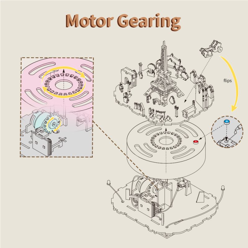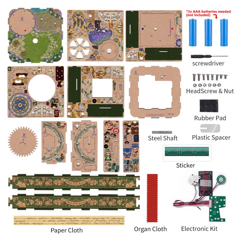 • Musica e Movimento: Una volta assemblato, il kit si trasforma in un vero carillon a carica che suona una dolce melodia, mentre la scena principale ruota o si illumina, aggiungendo un tocco di magia.