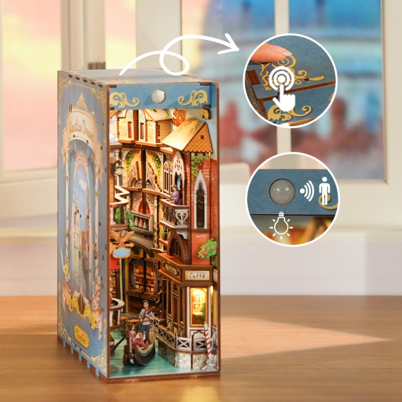 Trasforma la tua libreria in un romantico affaccio su uno dei luoghi più suggestivi del mondo con il Book Nook 3D in legno “Venetian Dreams” in versione Deluxe!