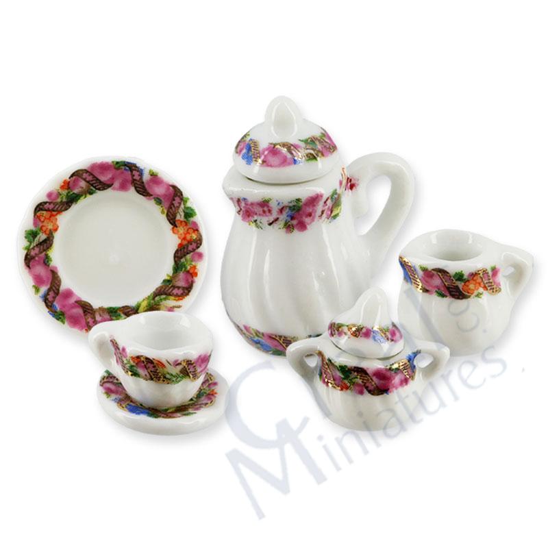 Aggiungi un tocco di raffinatezza primaverile alla tua tavola in miniatura con questo squisito set da 11 pezzi. Caratterizzato da un delicato decoro floreale, questo servizio incarna l’eleganza artigianale in scala 1:12.