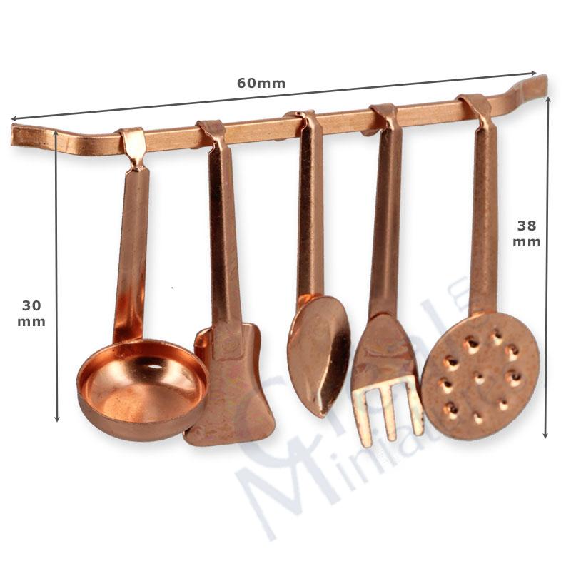 Arricchisci la parete della tua cucina in miniatura con questo elegante portautensili con 5 utensili coordinati.