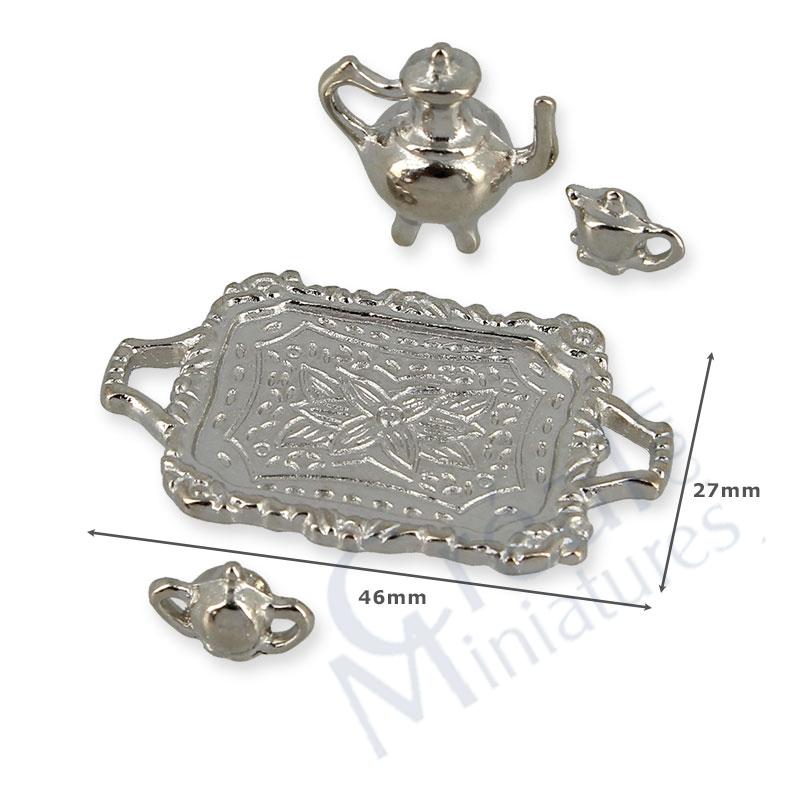 Eleva lo stile del tuo salotto in miniatura con questo prezioso set da caffè color argento.