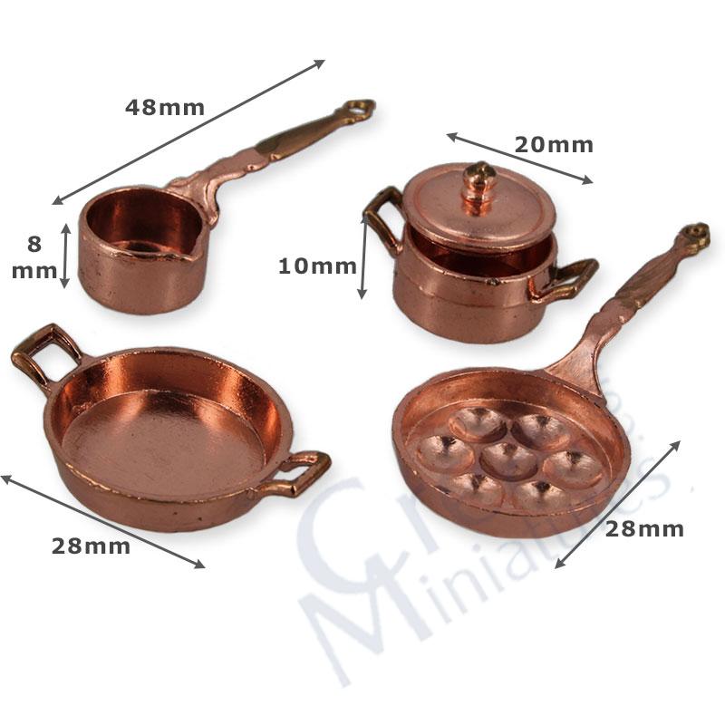 Aggiungi un tocco di eleganza rustica e calore alla tua cucina in miniatura con questo splendido set di 4 pentole color rame.